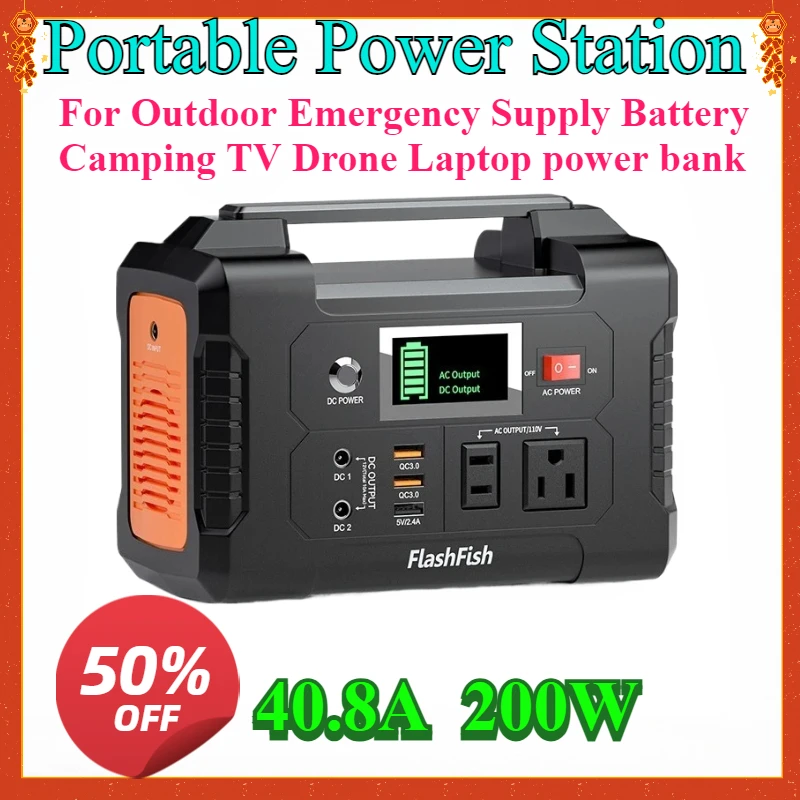 Flashfish portable power station EA200 is designed for outdoor activities' power supply. Small size (5.6lbs, 8.2x4.3x6.2 inch) with big capacity (151Wh), the most portable all-in-one power station can fulfill your demand for camping or emergency.