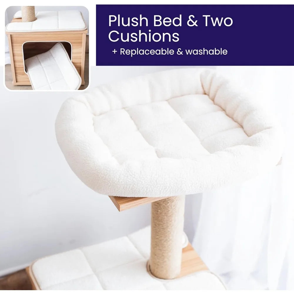 - Multifunctional Play House: This modern cat tree features a multifunctional design with a cute cat house equipped with a soft cat bed where your cat can retreat and indulge in its all-day sleep, and a cat post for your kitty to scratch and sharpen its claws, keeping it away from your furniture.