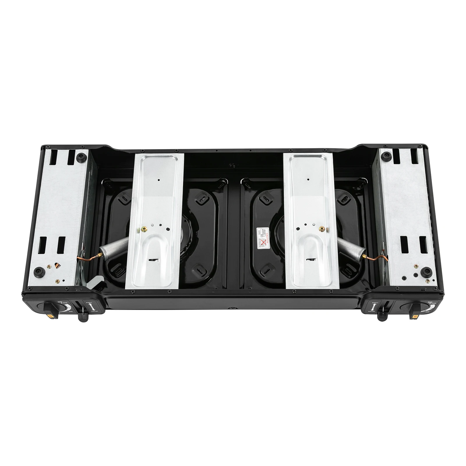 Efficient Cooking: The product delivers 0.37 lbs of gas consumption power per hour with 50% heat efficiency, which can heat food fast and evenly so you can quickly enjoy delicious flavors. The dual-burner design allows you to cook on both sides at the same time, dramatically reducing cooking time.